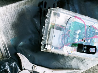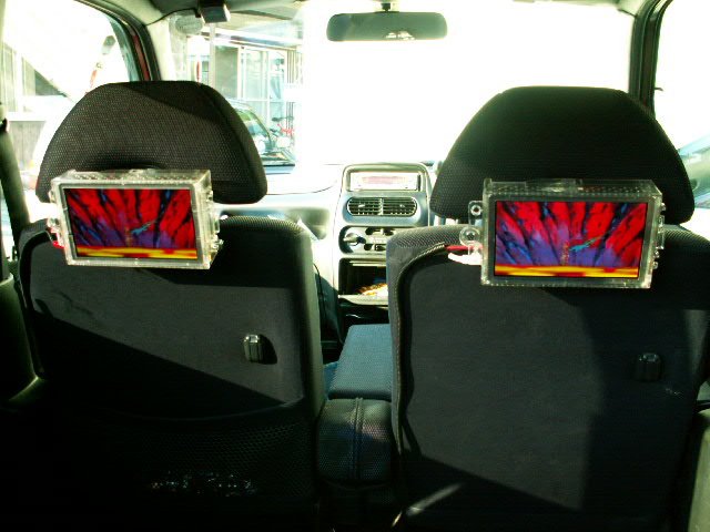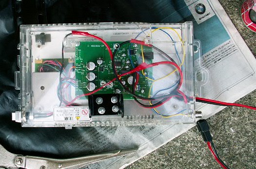 ・液晶裏に秋月電子通商のビデオ→RGBコンバータユニット(完成品)を固定していろいろ取り付けて完成したところ。