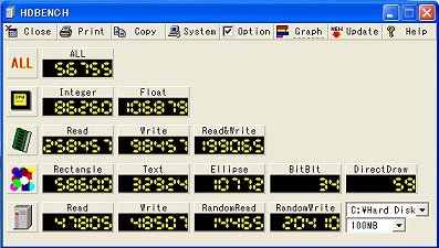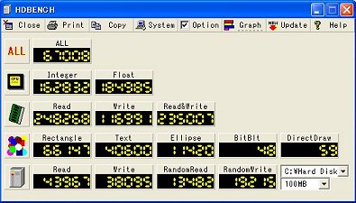 それではCPUの比較をしてみます。HDBENCHというソフトを使いました。