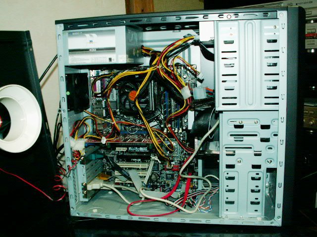 ・中身です。まだほぼ最低構成なので、すっきりしています。SLIをして、RAIDをして、水冷をして・・・といろいろとやってみたいです。