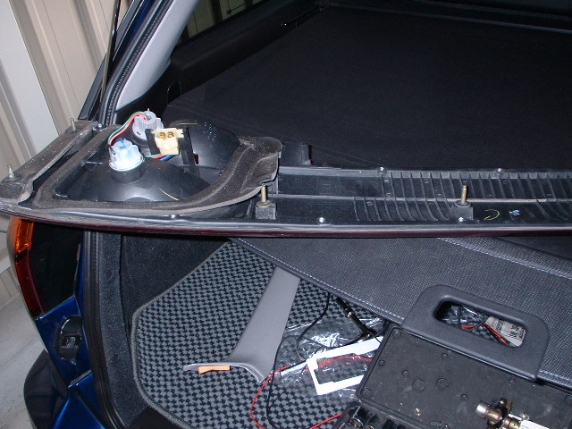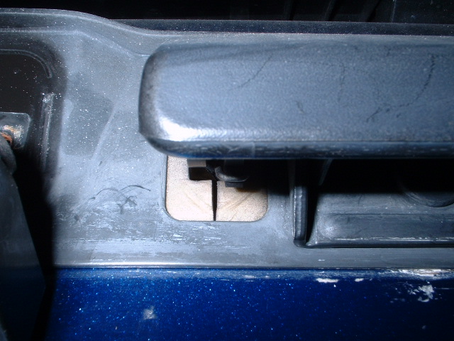 ・次に狙ったのがハッチバックの開閉レバーの隙間です。実際にコードを引き込んで満足していましたが、開閉レバーを動かそうとしたら動きませんでした・・・。(~_~;