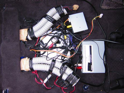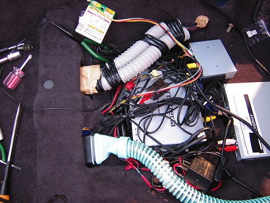 前回のナビ取り付け時の最終画像なのですが、助手席の下にナビのコントロールボックス(中央)、