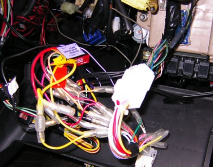 ・運転席の下のパネルを剥がした所です。この中央右のコネクターから取ります。