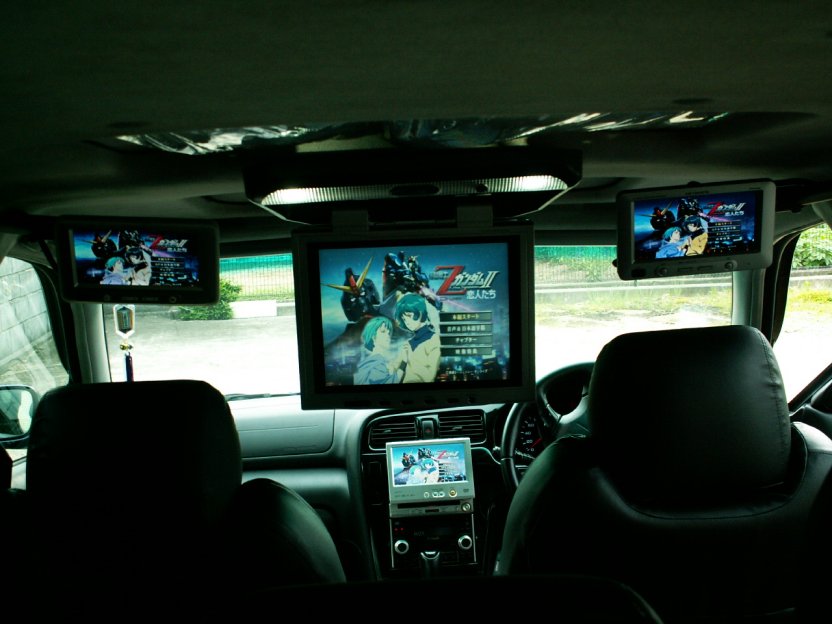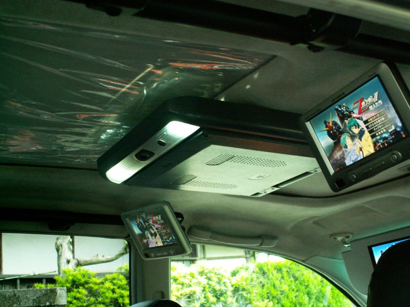 ・フリップダウンの液晶12.1インチ!ワイドじゃないけどね・・・。サンルーフと干渉しますが、ご愛嬌ということで・・・。