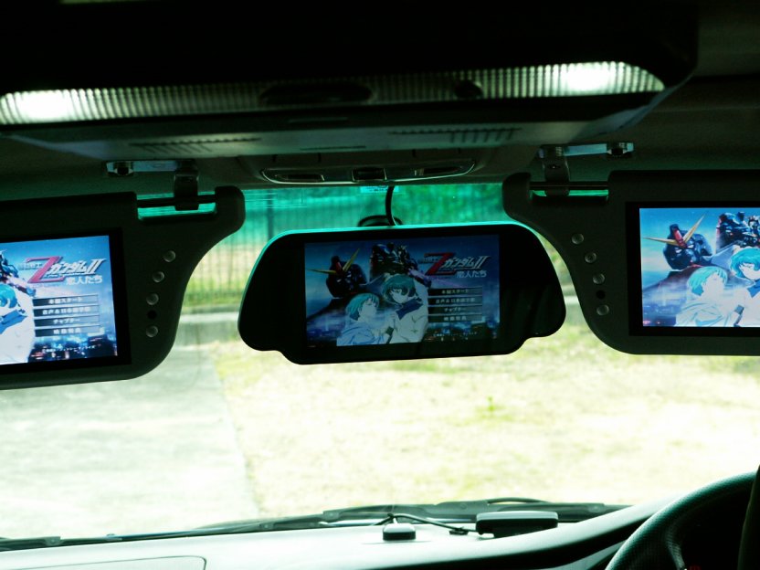 ・車に取付可能な液晶をインターネットオークションで調べていたら、いろいろありました。フリップダウン、ルームミラー、サンバイザー他いろいろ・・・。