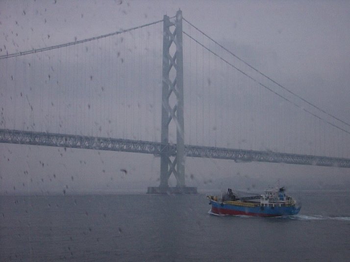 明石大橋をくぐりました!雨だったのがちょっと残念・・・。