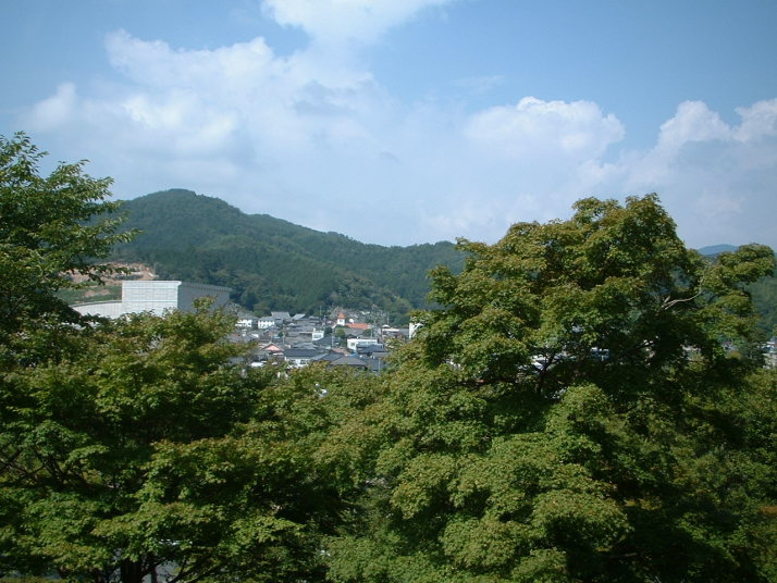 運動場前の銅像から町並みを見たところ