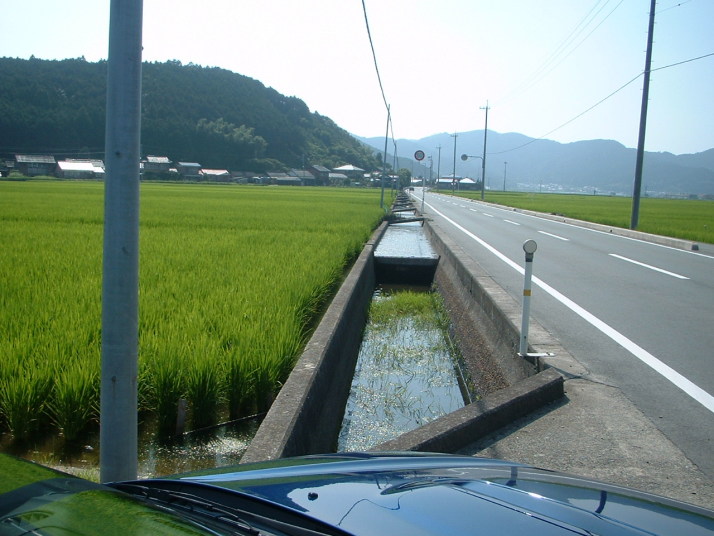 山田方面の水路、田んぼ、暑そうな空!くどいけど、この日32度