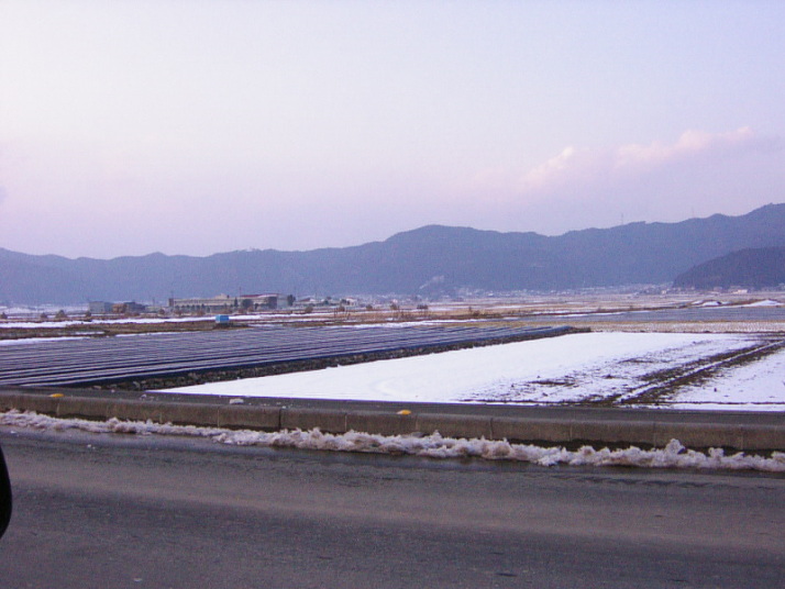 ・雪が落ち着いたので撮影に行きました。左中央に見えるのが石城小学校。