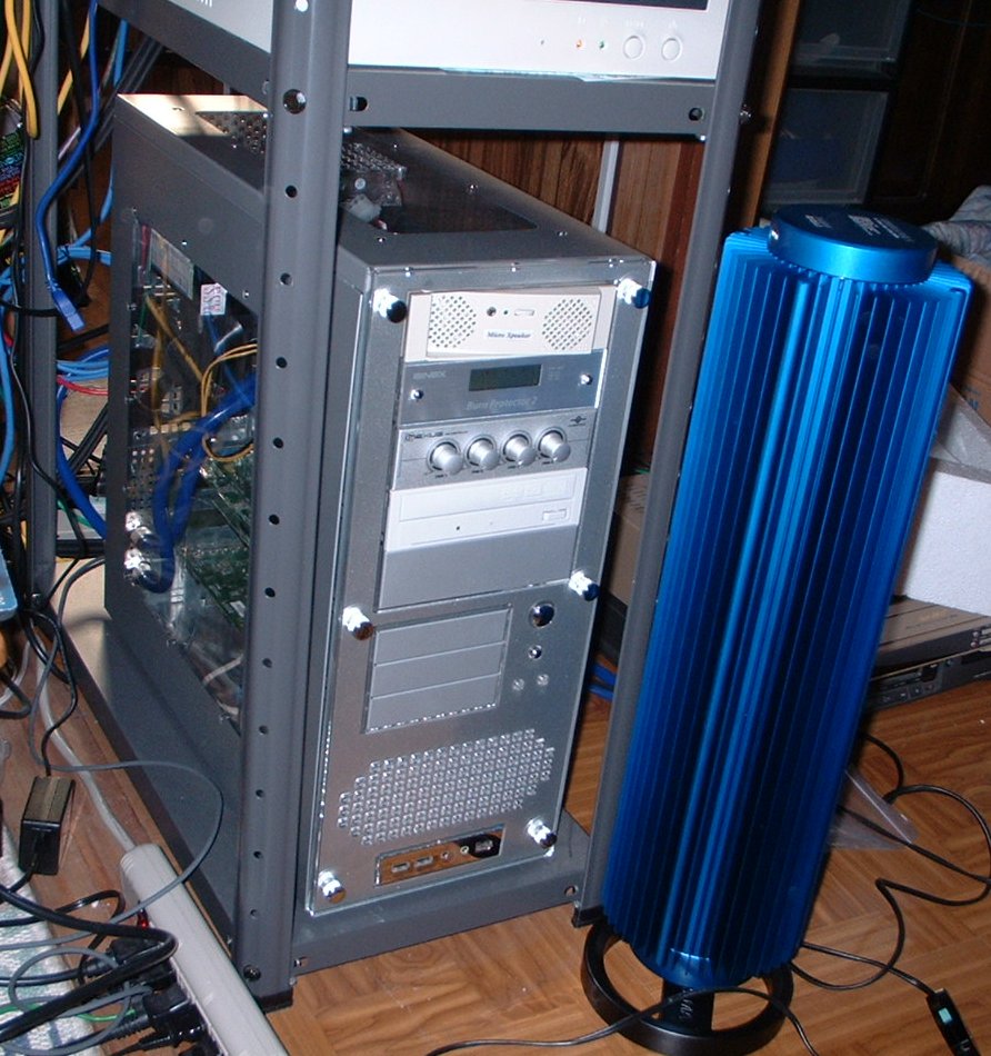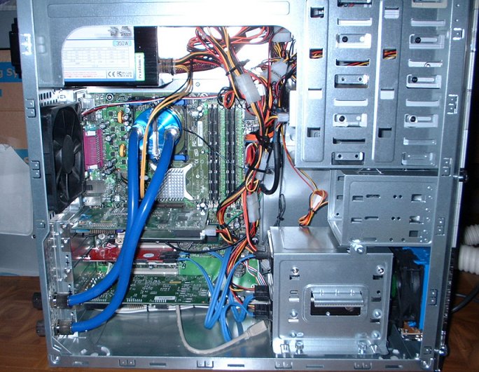 ・これは、今回、お役ご免になった水冷キットです。Yahoo!オークションにて、確か、18500円にて新品未開封を落札。5インチベイにセットするため、取り付けは簡単でした。しかし、あまり冷えない!すぐに47℃になります。それ以上にはなりませんが、この季節だからかも・・・。夏にはちょっと不安です。それから、ファンの回転音が気になります。