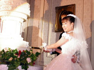 ・ケーキ入刀!旦那の顔が見えない・・・。
